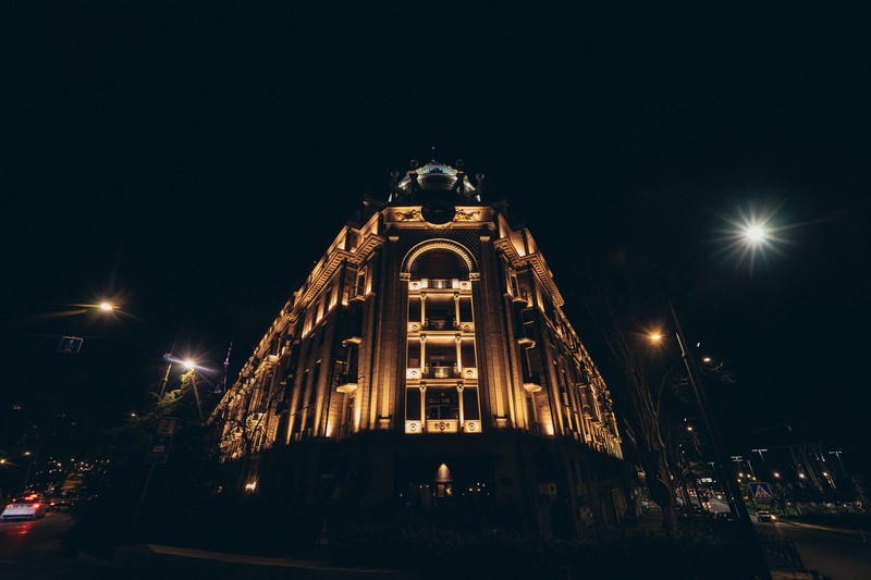 დეკორატიული განათება ისტორიულ შენობაზე