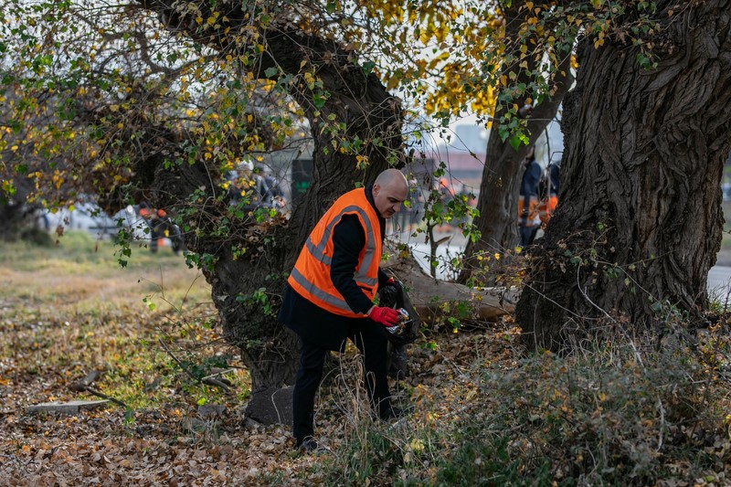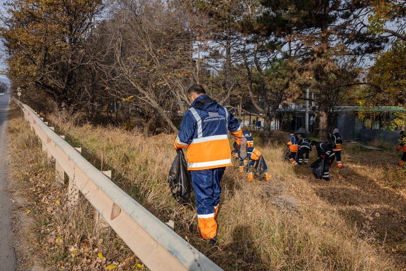 Employees of Tbilservice Group LLC cleaned both sides of the central road in the Tskhinvali settlement and the surrounding area of Leo Kvachadze Street. About 40 employees participated in the cleaning campaign, along with the director of Tbilservice Group, Giorgi Papava.