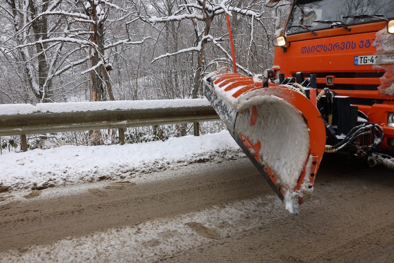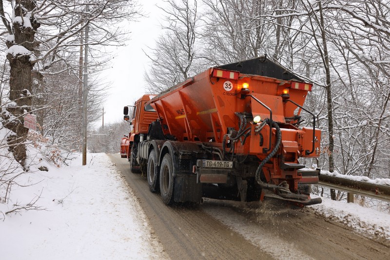Due to the ongoing precipitation, roads in the newly integrated areas of Tbilisi are being intensively cleared using special equipment. To ensure the smooth movement of vehicles, technical salt is being spread on the roads.